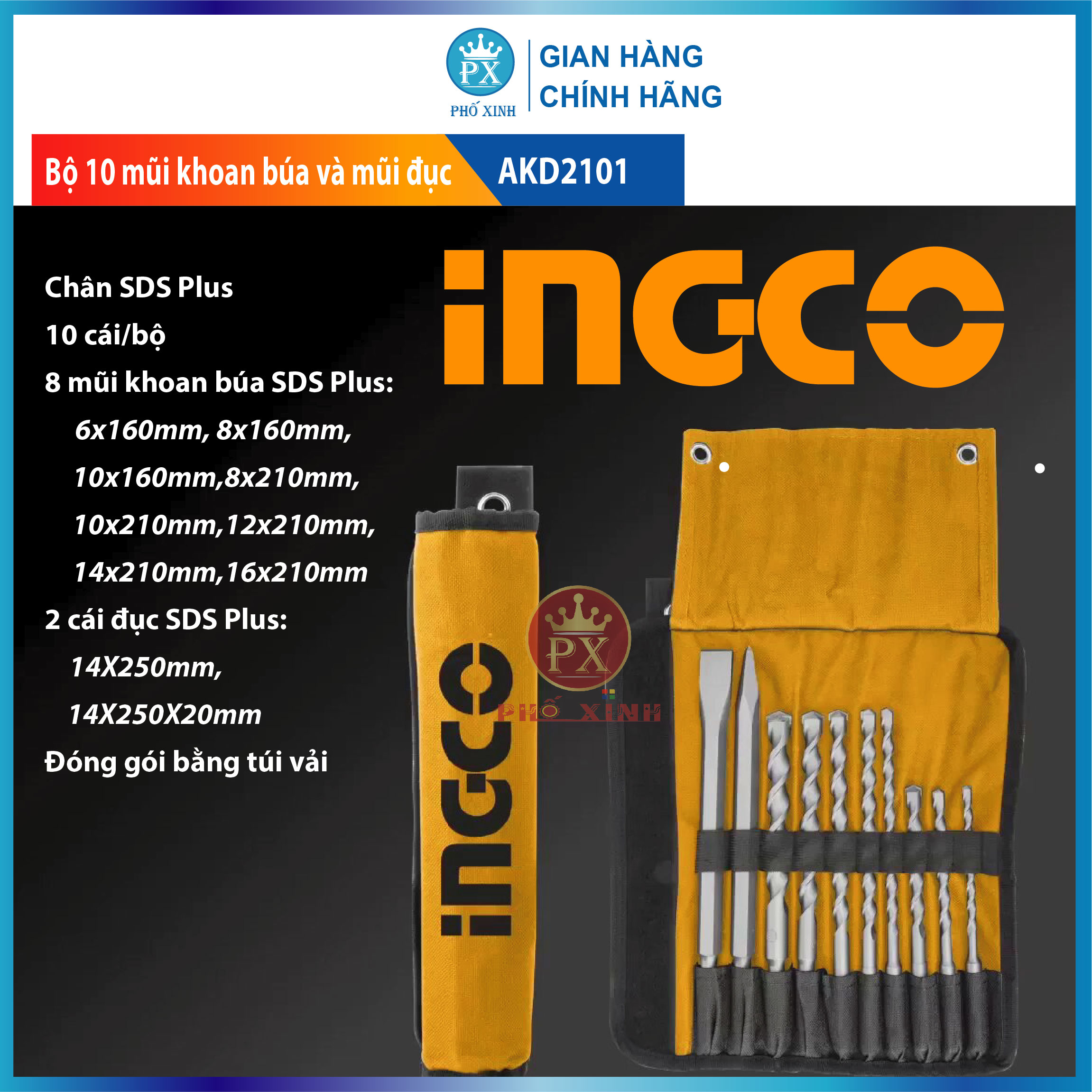 Mua tại TiktokBộ 10 mũi khoan và mũi đục INGCO AKD2101