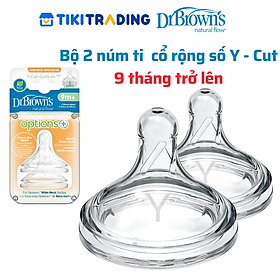 ✨Bộ 2 núm ti Dr.Brown's bình sữa cổ rộng Y-Cut (9 tháng trở lên) dòng Plus