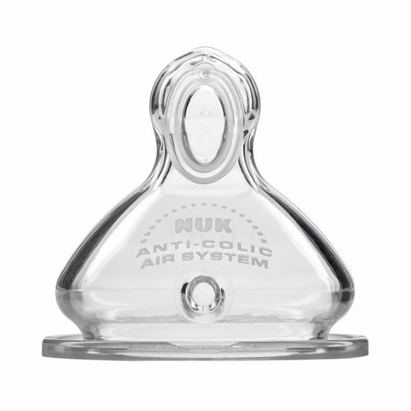 Mua tại Tiktok- Bộ 2 Núm Ti Silicone S1 Nuk NU66056 (Size M) với thiết kế lỗ tiết sữa ở mặt trên, sữa sẽ được đưa lên vòm họng và hòa cùng với enzyme nước bọt trước khi nuốt để trẻ dễ tiêu hóa, tránh bị sặc do sữa đi thẳng vào họng.