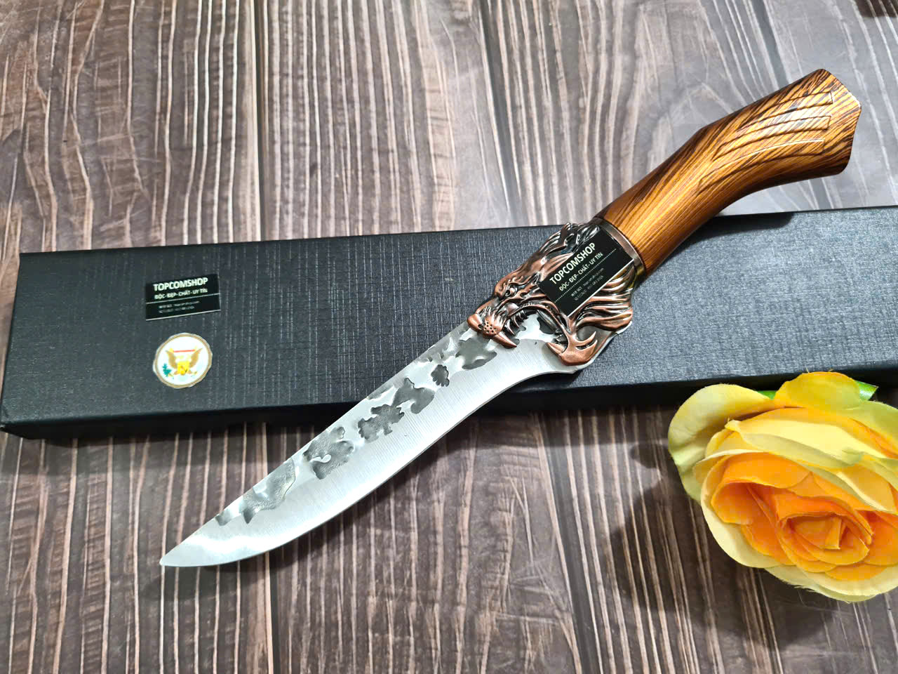 D SỐ 1 : TỔNG DÀI : 29cm, LƯỠI: 14cm,RỘNG : 4.5cm, dày: 3mm, NẶNG : 1.5 lạng, CHẤT liệu lưỡi: 4Cr13MOV (thép 4 crom 13 molypden vanadi).Chất liệu CÁN: nhựa abs xịn . khâu đầu rồng và chuôi bằng thép 4cr13