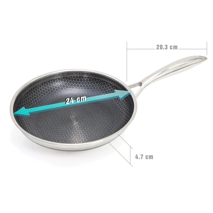 • Chảo tổ ong chống dính dạng tay cầm đáy liền 3 lớp Inox Sus304 vân chống trượt • Công nghệ Honey Comb - dạng tổ ong chống dính và chống quá nhiệt an toàn
