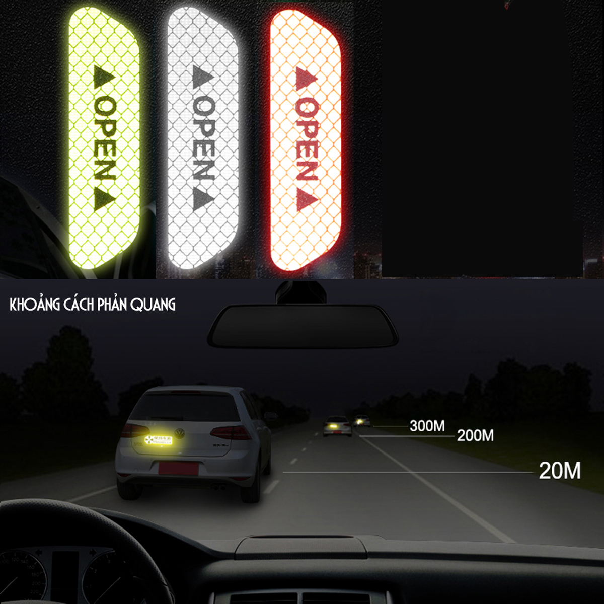 Phản Quang Cảnh Báo Mở Cửa Xe Hơi, Decal Phát Sáng Phát Hiện Từ Xa Ngừa Tai Nạn, phụ kiện xe hơi,