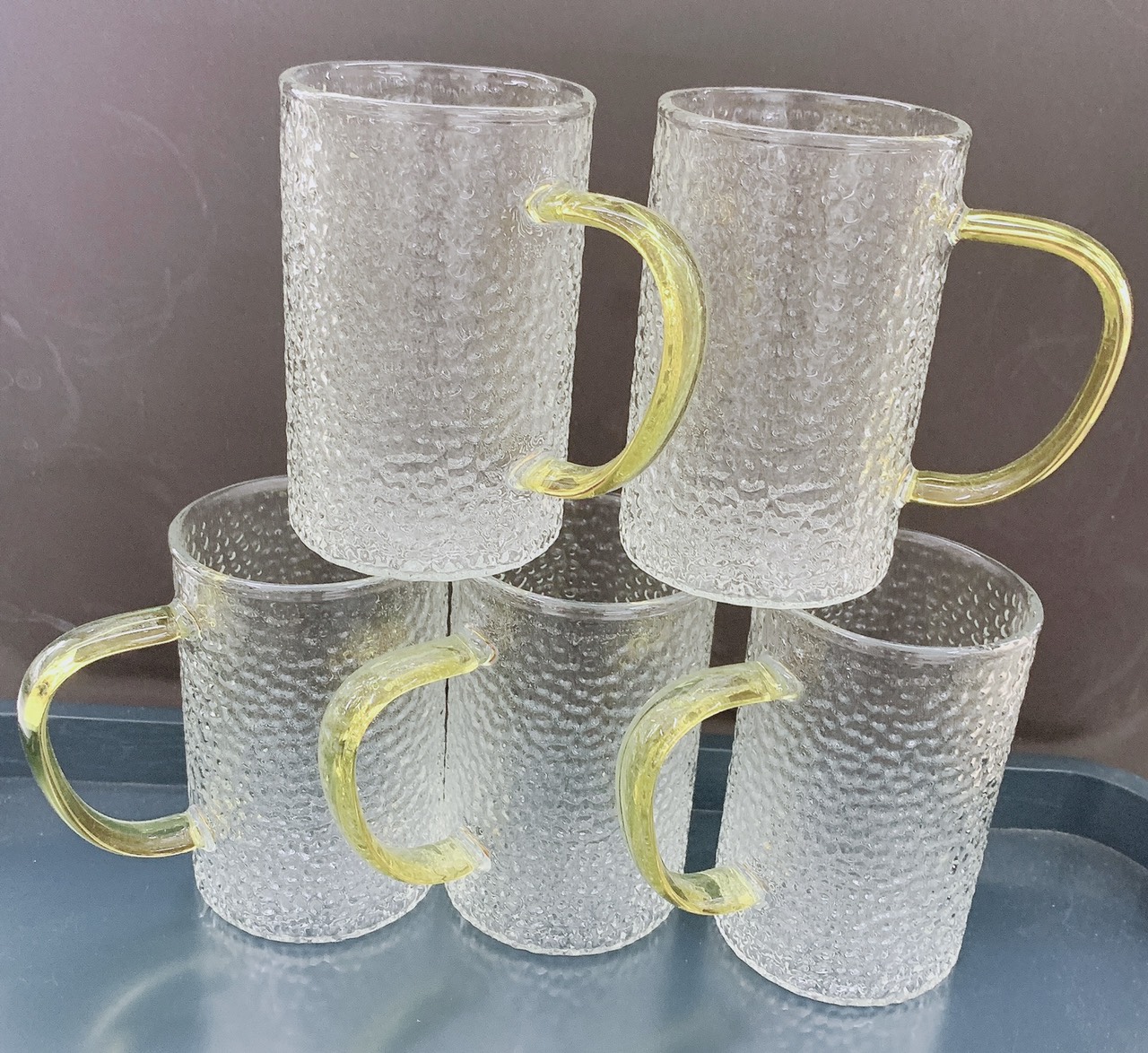 Mua tại TiktokBỘ 6 CỐC THỦY TINH UỐNG NƯỚC CHỊU NHIỆT 350ml CRYSTAN CAO CẤP VÂN DẬP NỔI QUAI VÀNG
