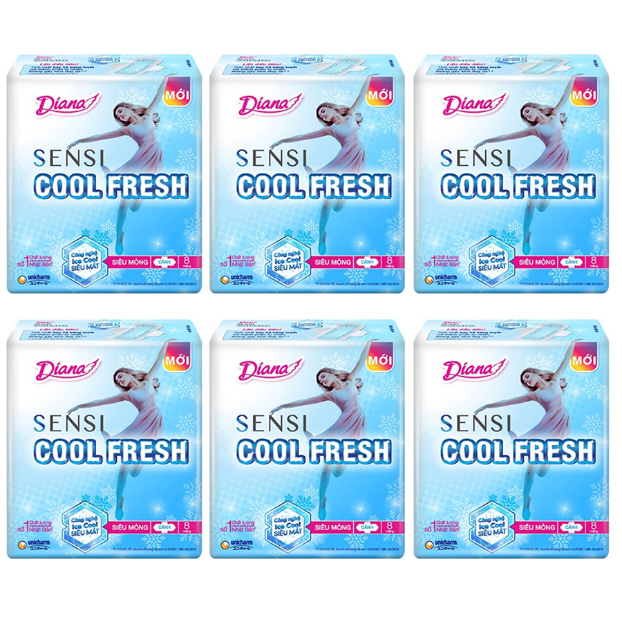 ✨Bộ 6 Gói Băng Vệ Sinh Diana SenSi Cool Fresh Siêu Mỏng Cánh (8 Miếng/Gói)