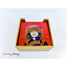 ✨BỘ 6 LÓT CỐC SƠN MÀI HÌNH CÁC CÔ GÁI DÂN TỘC.