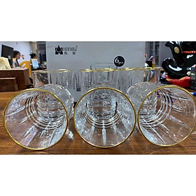 ✨Bộ 6 ly thủy tinh chịu nhiệt uống nước viền vàng vân đáy