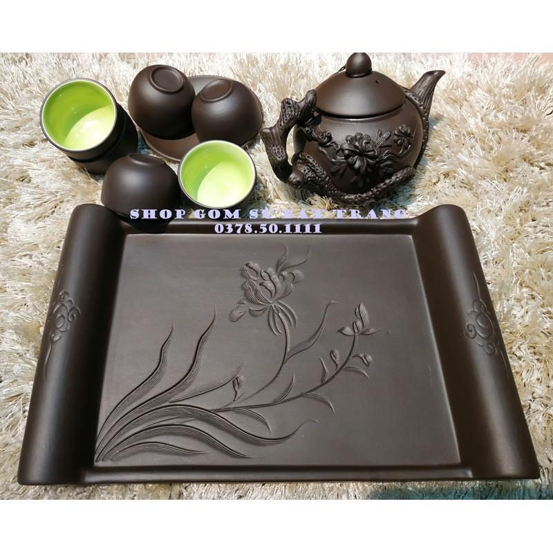 Bộ ấm trà gốm đắp tay khay chữ nhật 29 x 19cm - chuẩn loại 1 Bát Tràng + Chất liệu đất tử sa cao cấp + Sản xuất tại Bát Tràng + Bộ gồm