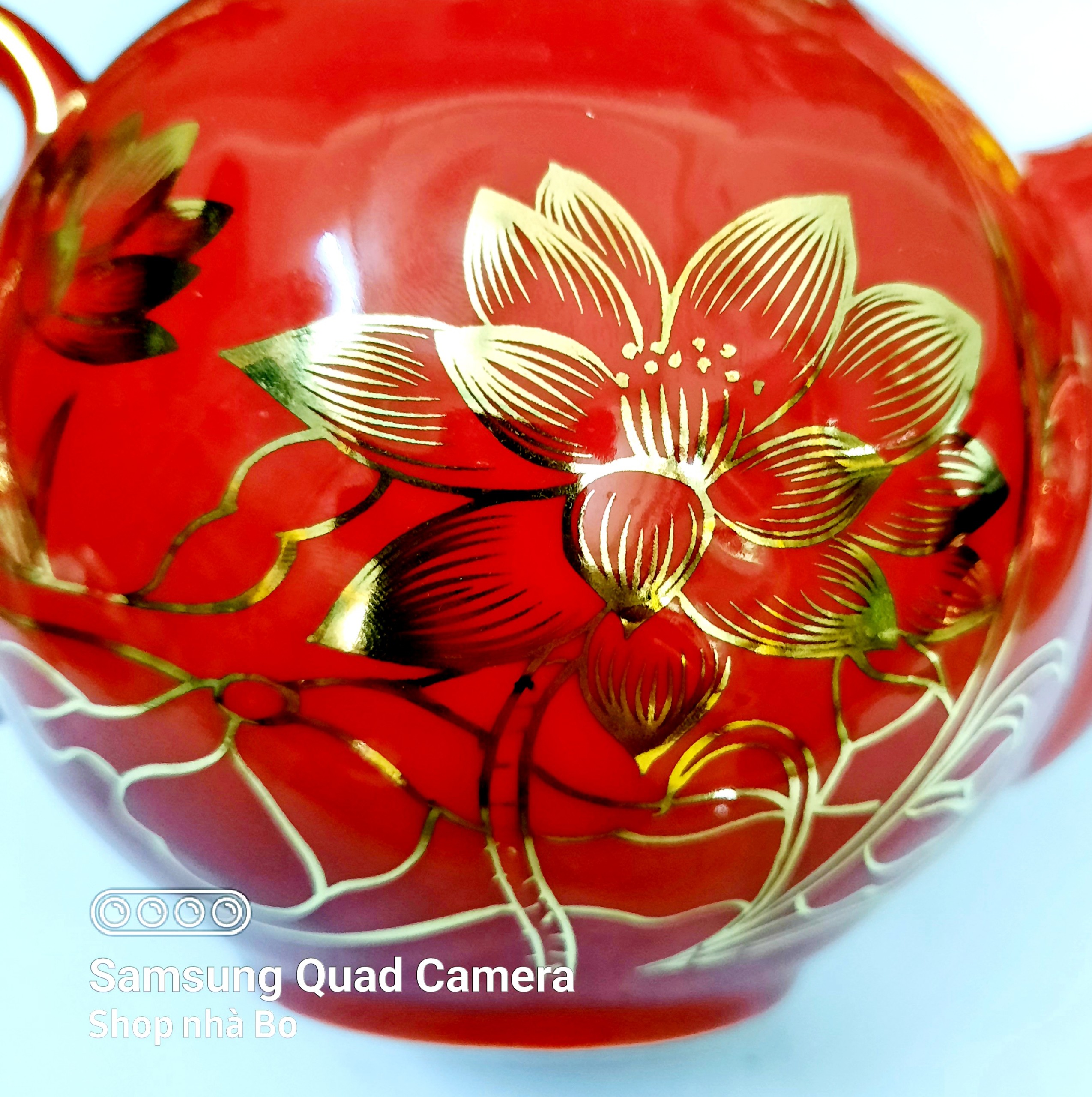 Bộ ấm chén Bát Tràng cao cấp mẫu đơn đỏ vẽ sen vàng Bộ ấm chén BátTràng là bộ ấm chén được làm từ làng nghề gốm sứ truyền thống Bát Tràng. Một trong những