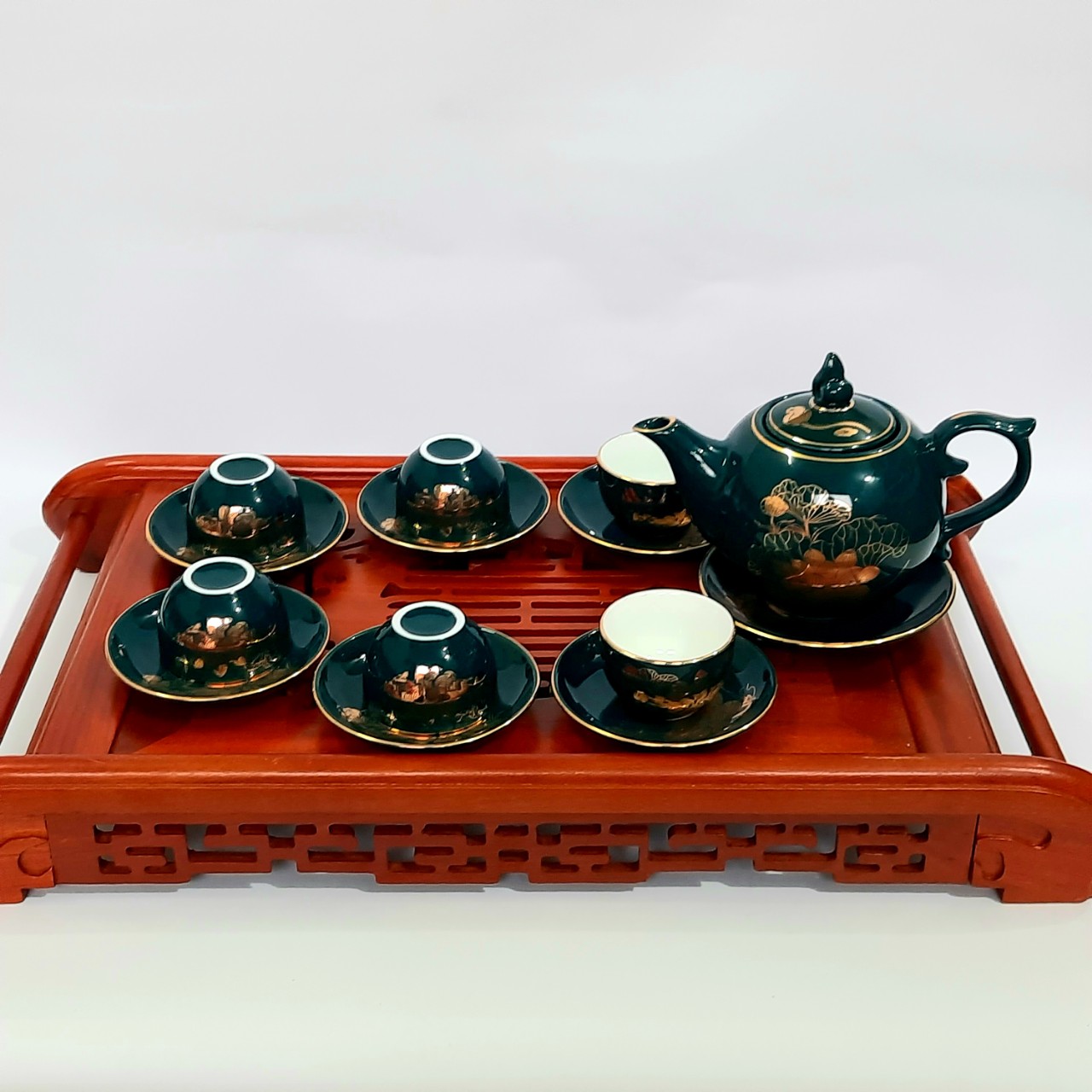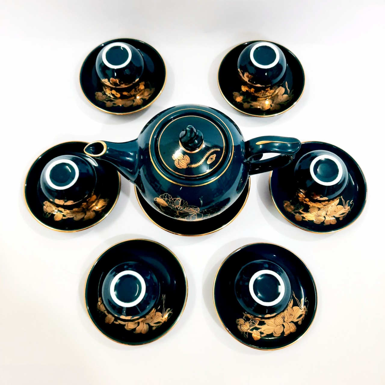 BỘ ẤM CHÉN VẼ VÀNG 24K VỚI HỌA TIẾT HOA SEN