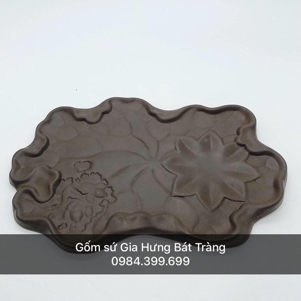 Bộ ấm trà Gốm Đặng Gia Bát Tràng, khay lá sen to 50x40, ấm hoa nổi đắp tay
