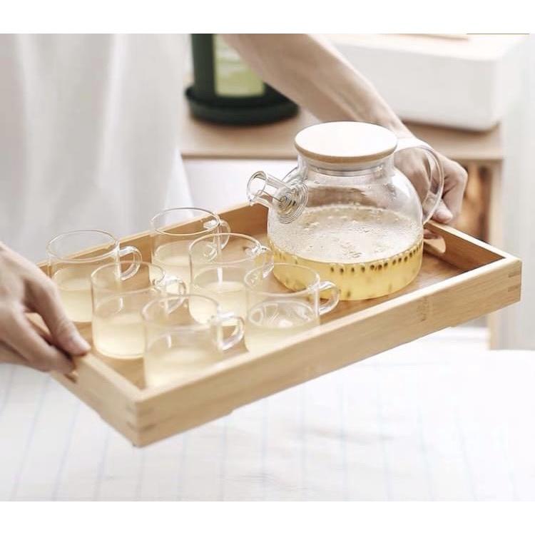 ✨Bộ ấm chén thủy tinh pha trà chịu nhiệt cao cấp 1000ml kèm khay tre