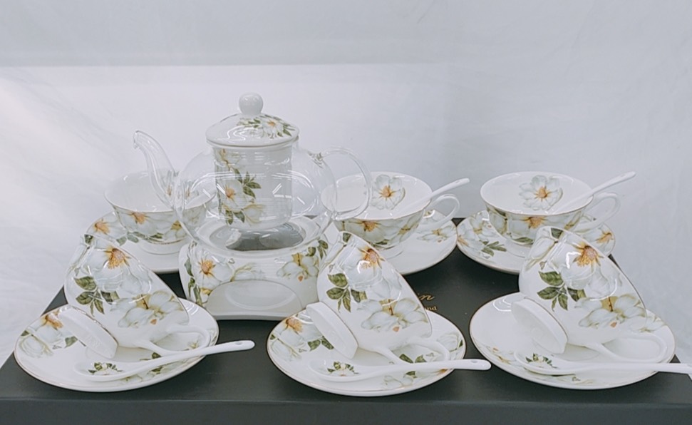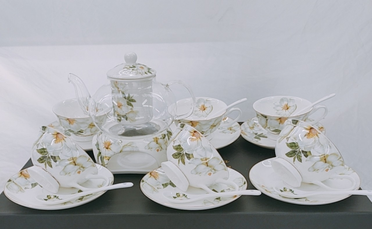 Bộ ấm chén chất liệu sứ xương cao cấp với thiết kế đẹp ,tiện dụng chất liệu cao cấp,dễ bảo quản ,vệ sinh.