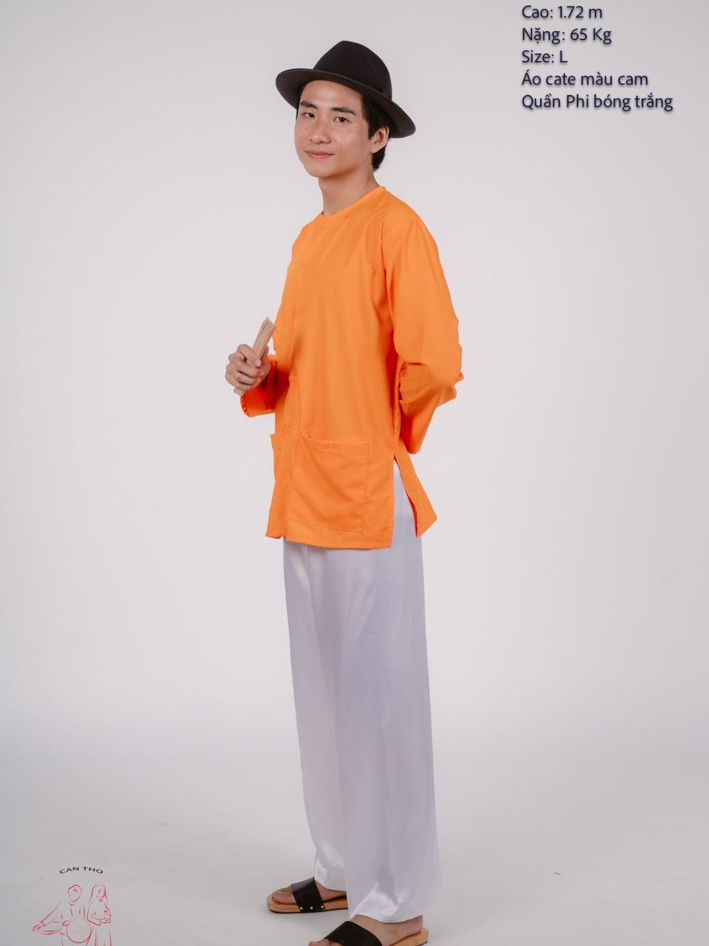✨Bộ áo bà ba nam phối áo cate cam+ Quần phi trắng - Có bộ bà ba Bigsize