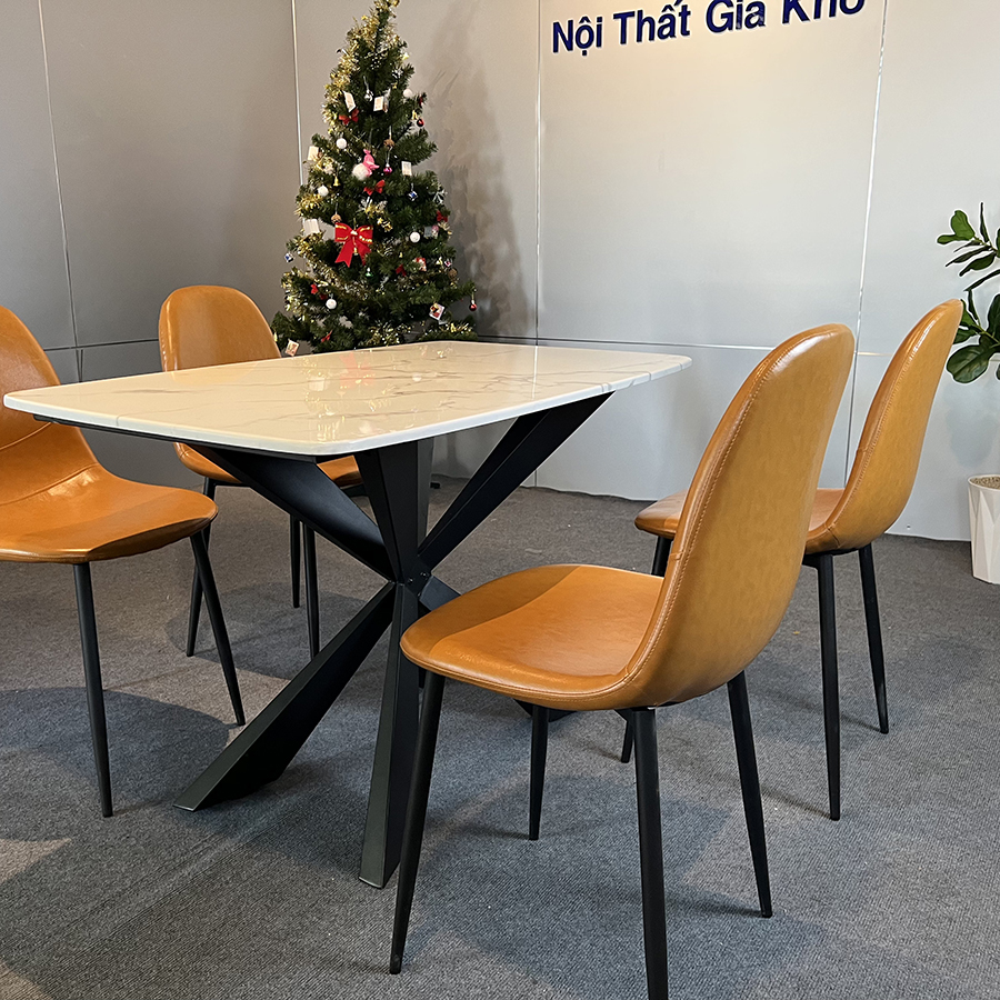 • Bàn ăn mặt đá cẩm thạch nhân tạo, Chân bàn sắt màu đen sơn tĩnh điện