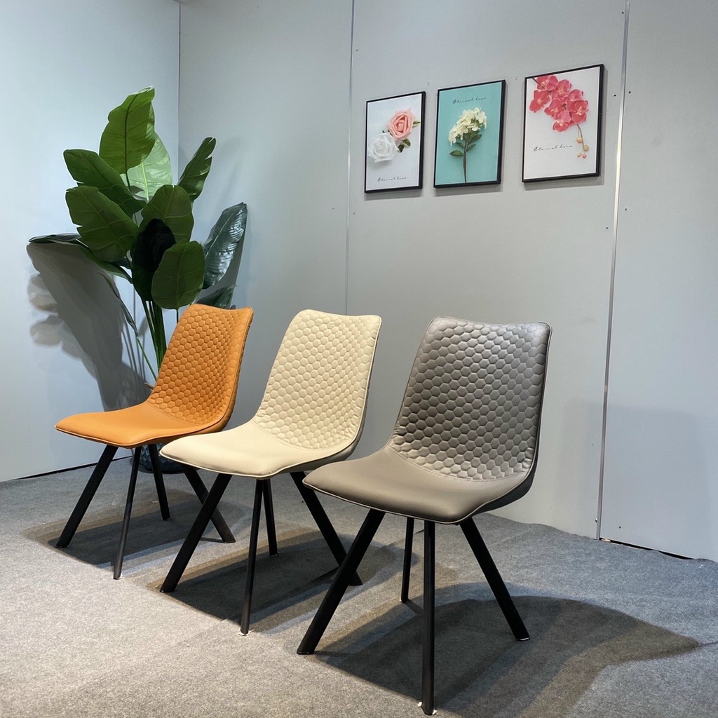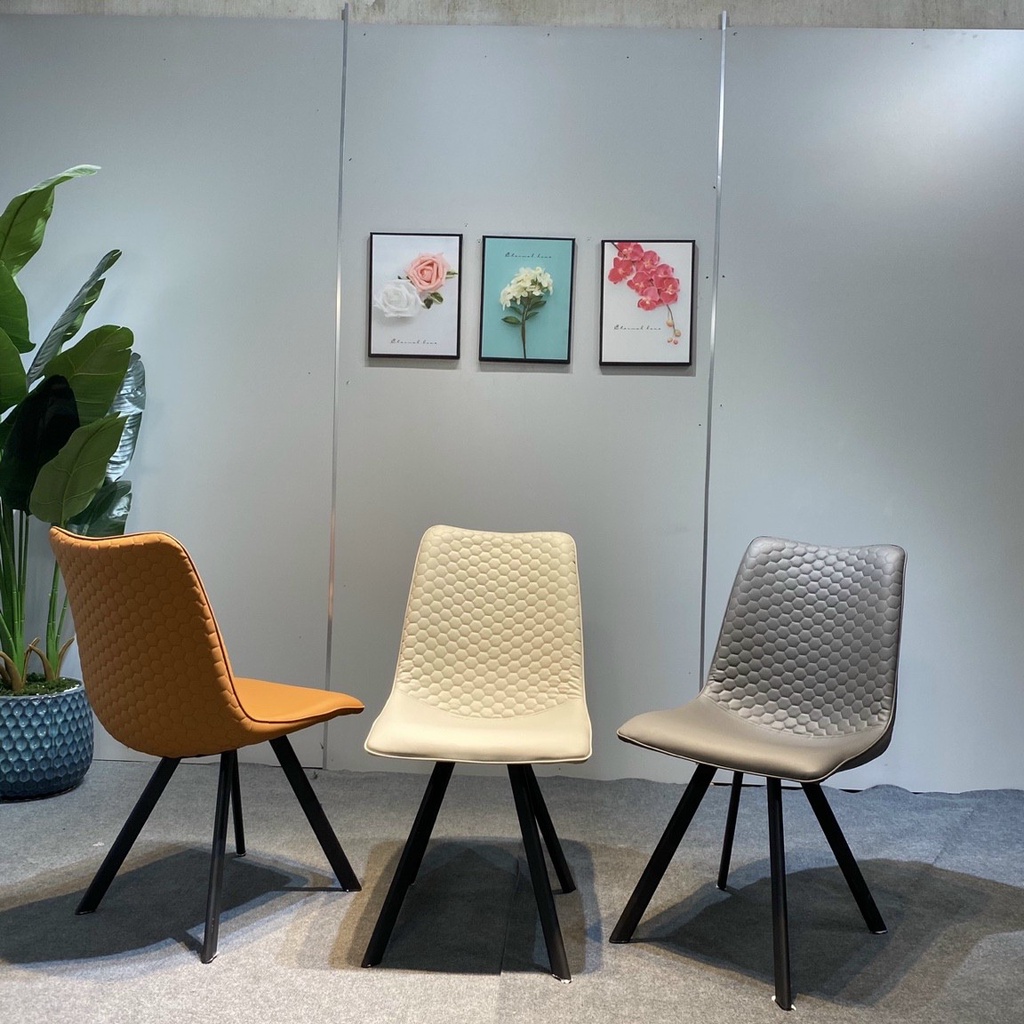 - Ghế ăn bọc da cao cấp ở bề mặt tiếp xúc, chân sắt sơn tĩnh điện