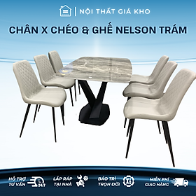 Giao bộ bàn ăn cho Khách - Bàn ăn chân chéo mặt đá Ceramic bóng kết hợp Ghế Nelson trám