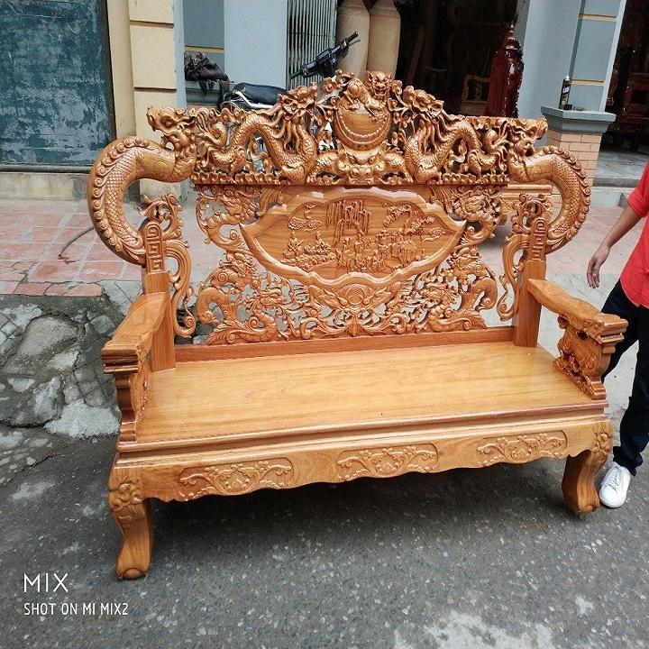 Bàn giao bộ ghế rồng khuỳnh nghê đỉnh cột 14 gỗ xà cừ và kệ sừng trâu gỗ gõ | xưởng mộc đình huy