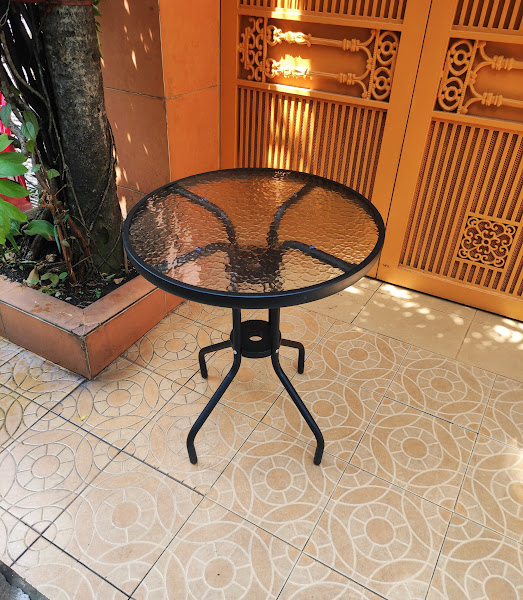 - Chất liệu bàn: mặt kính cường lực, khung sắt sơn tĩnh điện màu nâu
