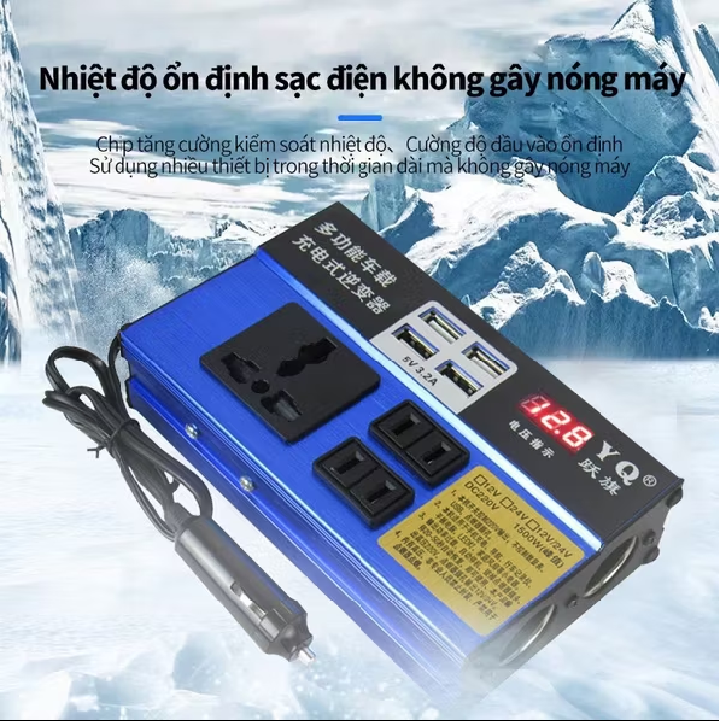 Công suất: DC 150W Tích hợp 4 cổng sạc USB3A và 2cổng 220V Có đèn Led hiển thị. Bộ chuyển nguồn điện xe ô tô chính hãnglà bộ sản phẩm chuyển đổi nguồn dành cho