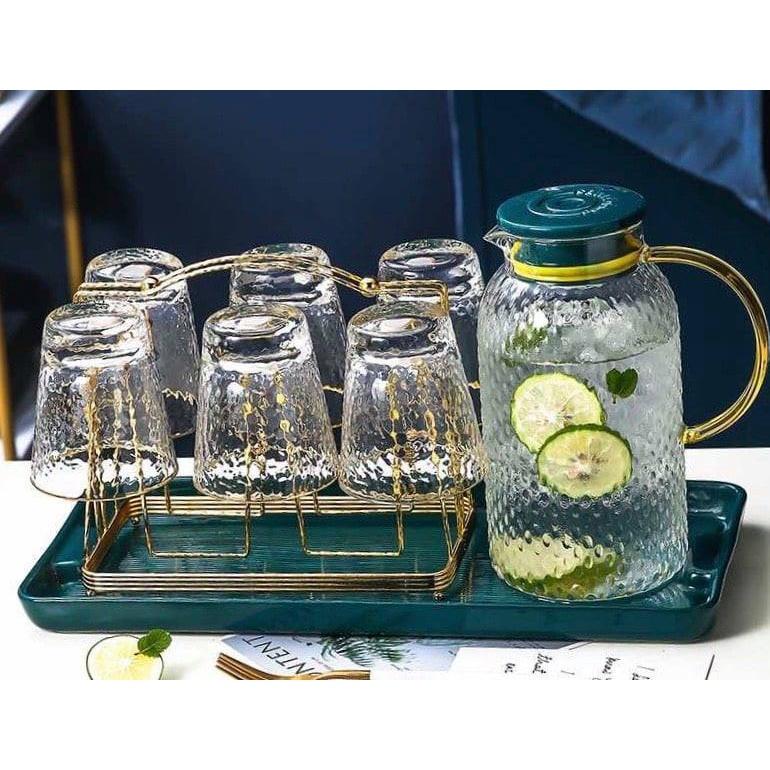 Bộ bình 6 cốc thủy tinh chịu nhiệt mạ vàng cao cấp