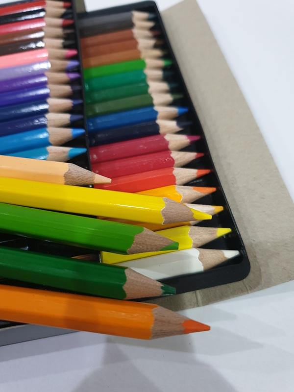 - Chất liệu: + Gỗ cao cấp, bút không dễ gãy dù có tác động lực mạnh trong khi tô hay vô tình làm rơi sản phẩm. + Chất màu chuẩn, chất lượng, tone màu tươi