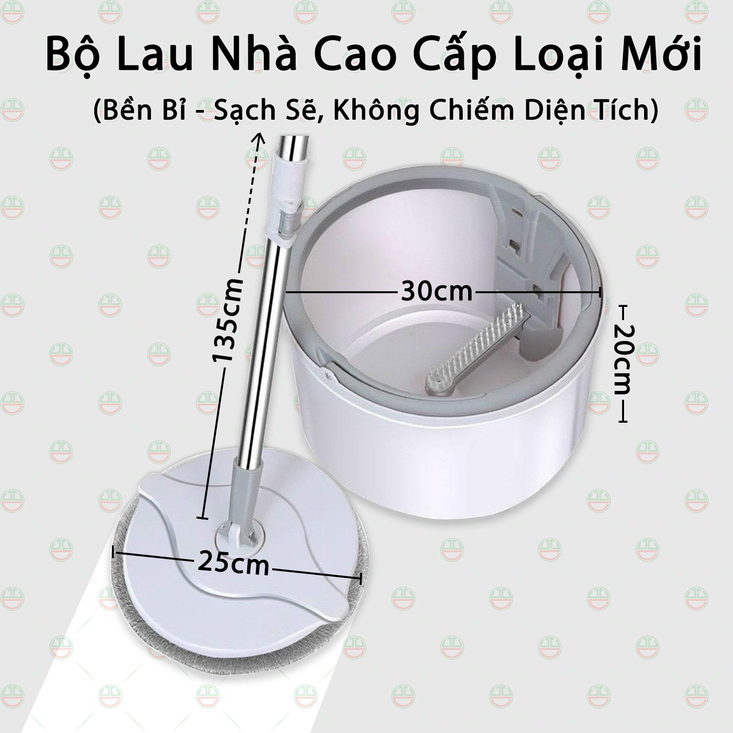 - Cây lau chất liệu inox không gỉ, kích thước dài từ 110-135cm, bàn lau hình tròn