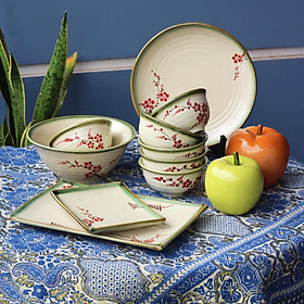 ✨Bộ Chén Bát Hoa Đào Đỏ MNV-BHD01