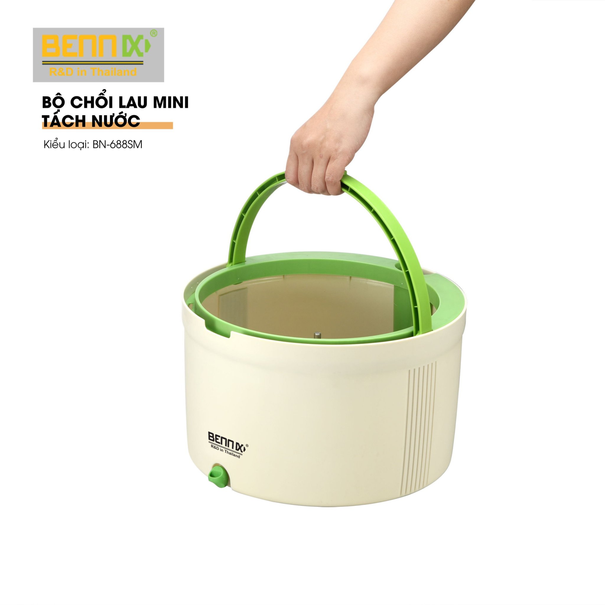 ✨Bộ Chổi Lau Nhà Mini Tách Nước Bẩn Bennix Thailand, Cây Lau Nhà Tự Vắt Thông Minh BN-688SM Kèm Thùng Cao Cấp- Hàng Chính Hãng