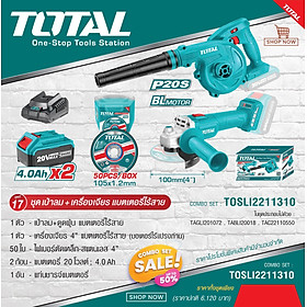 ✨BỘ COMBO MÁY MÀI GÓC TAGLI20107 VÀ THỔI BỤI TABLI20018 DÙNG PIN 20V (2 pin 4.0Ah và 1 sạc) TOTAL TOSLI2211310 - HÀNG CHÍNH HÃNG