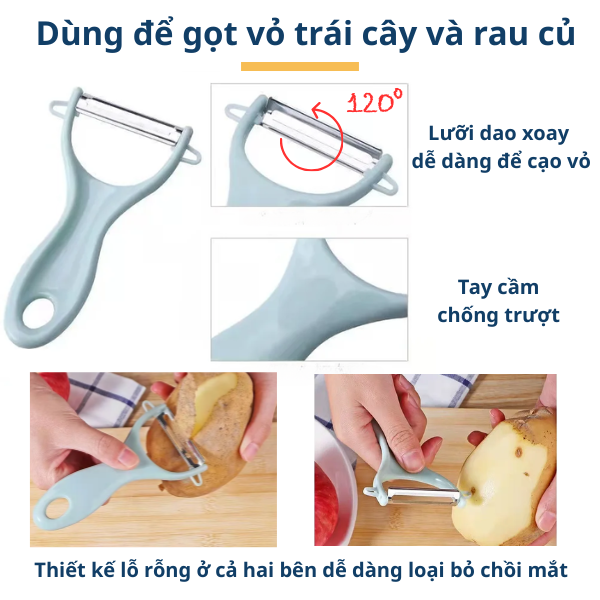 Lưỡi dao inox sắc bén, không gỉ sét, dễ dàng thái, gọt, nạo nhiều loại trái cây và rau củ.
