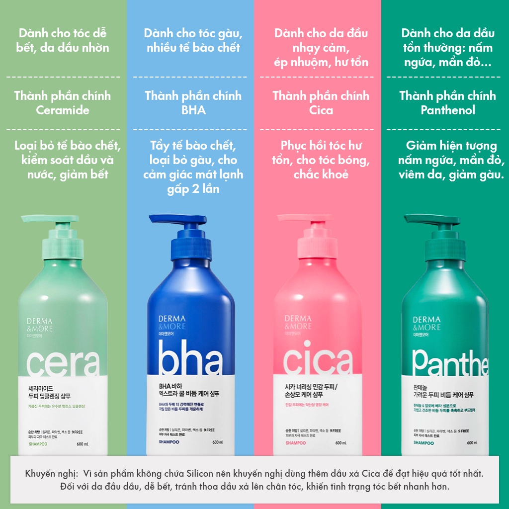 - Bộ dầu gội xả Derma & More CICA là sản phẩm chăm sóc tóc và da đầu theo xu hướng mới với thành phần dược liệu 100% từ thiên nhiên.