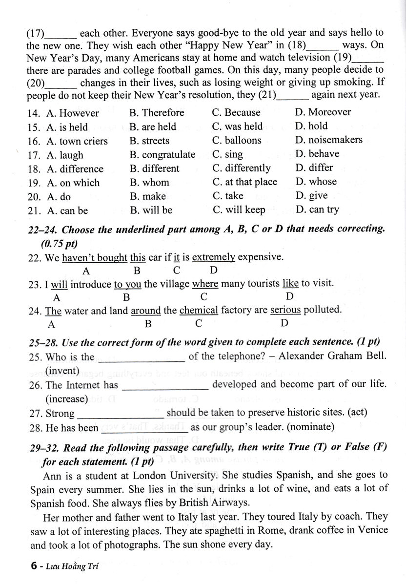 Để giúp các em học sinh lớp 9 có thêm tài liệu để luyện tập, củng cố, và hệ thống các kiến thức cơ bản trong chương trình Tiếng Anh lớp 9, chuẩn bị cho kì thi Tuyển sinh vào lớp 10 Trung học phổ thông, chúng tôi biên soạn cuốn Bộ Đề Thi Tuyển Sinh Vào Lớp 10 Môn Tiếng Anh.