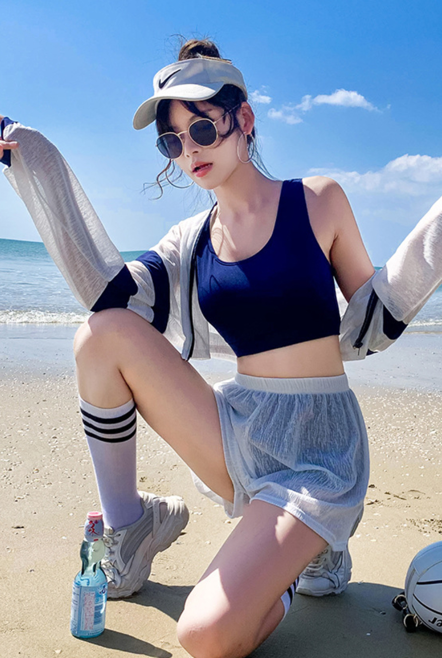 - Mẫu đồ bơi dành cho các bạn nữ cần bảo vệ làn da của mình dưới ánh nắng mặt trời trực tiếp. - Có thể mặc riêng 2 chi tiết thể thao khỏe khoắn