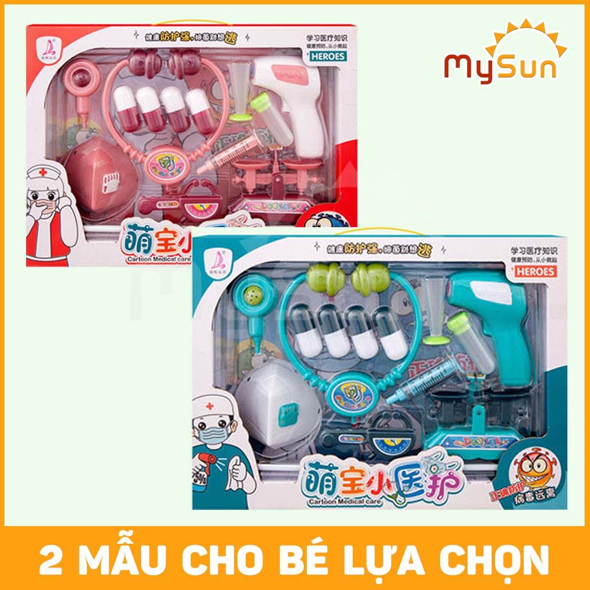 - Bộ đồ chơi bác sĩ trẻ em có 2 màu hồng cho bé gái và màu xanh cho bé trai.