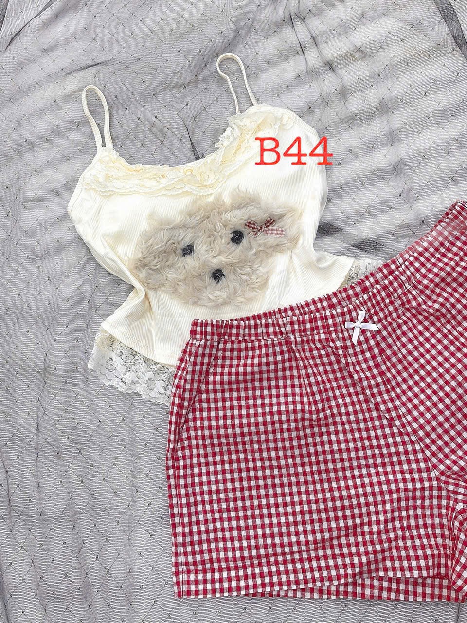 Mua tại TiktokThương hiệu: Sanny House Tên sản phẩm: Bộ đồ ngủ B44 Chất liệu: cotton thun lạnh cao cấp mềm mịn, co giãn, thấm hút tốt Kiểu dáng: gợi cảm, trẻ trung, hiện đại Màu: kem đỏ Size: dưới 60kg