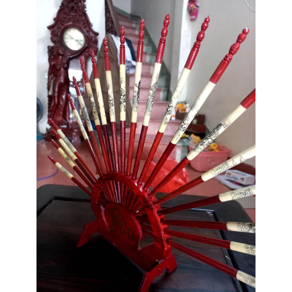 _ Bộ đũa thờ kệ và đũa 10 đôi được làm bằng chất liệu gỗ hương tự nhiên 100% ,Ở giữa thân đũa được nối đoạn sương trắng ,kết hợp với khắc rồng cuốn Bộ