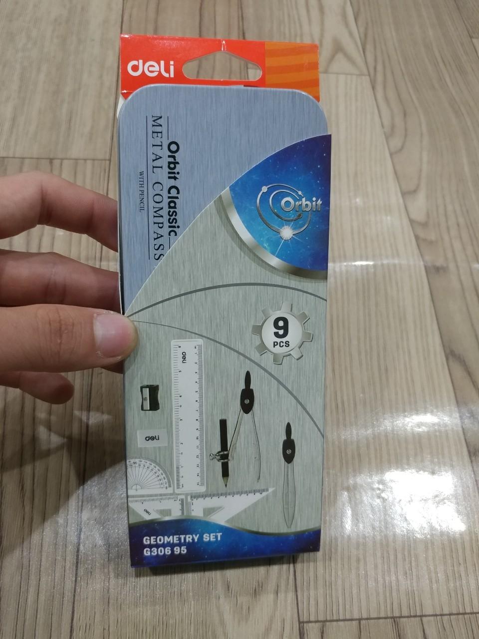 Bộ Dụng Cụ Học Sinh 09 Món - Deli G30695 gồm 2 thước ê-ke, 1 thước dài 15 cm và 1 thước đo độ, 2 compa, 1 bút chì gỗ gắn compa, 1 gôm, 1 đồ chuốt làm bằng nhựa tốt. Tất cả đều là các công cụ...