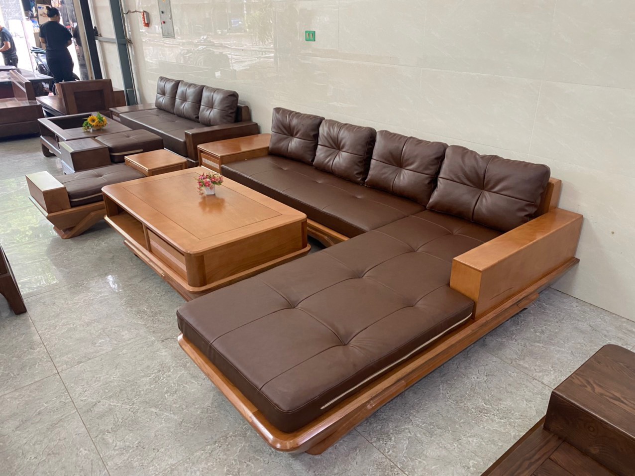 ✨Bộ ghế gỗ sồi nệm da Tundo dày 15 cm kích thước 3m x 2m x 80 cm