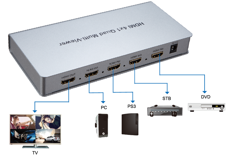 • Hỗ trợ 4 kênh phân chia màn hình tín hiệu HDMI