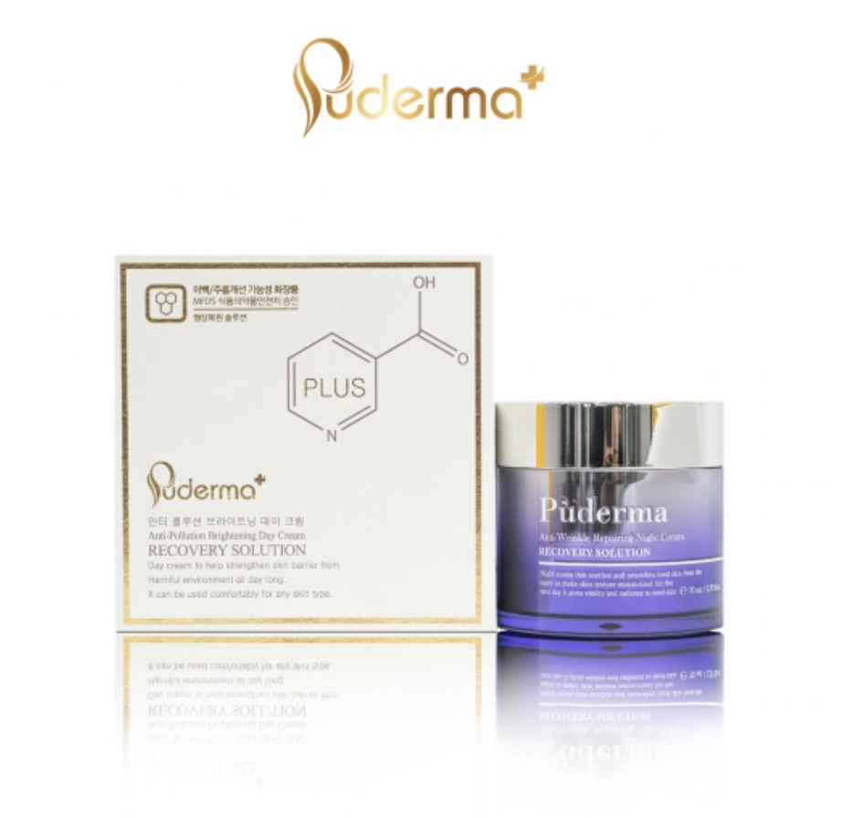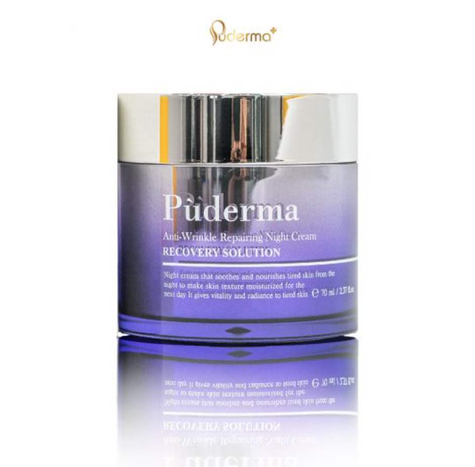 • Công dụng: Kem ngày Puderma cung cấp các dinh dưỡng, vitamin giúp dưỡng ẩm sáng da, hỗ trợ điều trị nám, làm săn chắc cơ mặt, xoá mờ nhăn và đào thải độc tố, các chất cặn bã có trong da khiến da ngày càng khỏe hơn, giàu dinh dưỡng và được trẻ hoá. Đồng thời nuôi dưỡng da từ sâu bên trong giúp da luôn mịn màng, tươi mát và trắng sáng. Kem dưỡng da ban ngày Puderma Anti-Pollution Brightening Day Cream cung cấp độ ẩm, dưỡng chất cho da, giúp làm mờ vết thâm, vết nám, làm giảm nếp nhăn trên da,. KEM DƯỠNG DA BAN ĐÊM PUDERMA ANTI-WRINKLE REPAIRING NIGHT CREAM Dung tích: 50ml Công dụng: Sử dụng vào ban đêm trước khi đi ngủ, cung cấp độ ẩm và dưỡng chất cho da, giúp làm giảm nếp nhăn, mang lại làn da trắng, mịn màng.