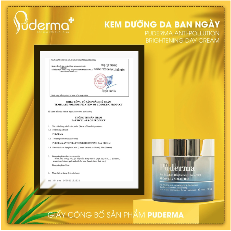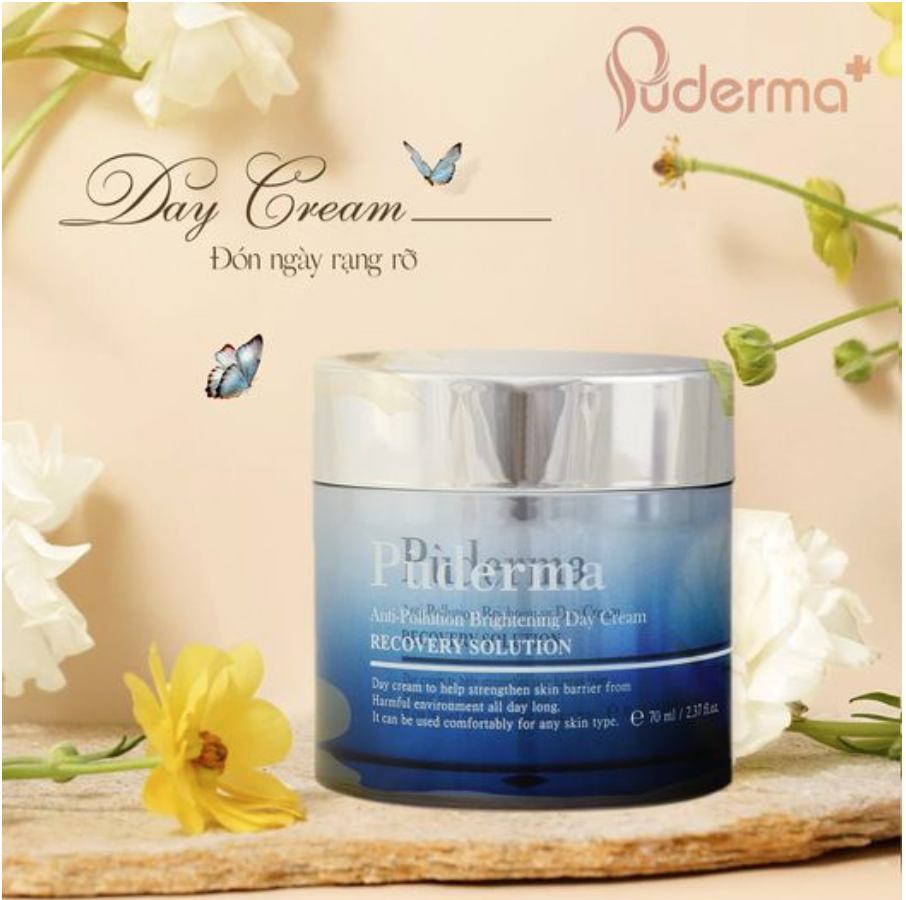 DA ĐẸP là DA PHẢI KHỎE, nếu dưỡng da đúng cách thì da phải ngày càng dày lên để đủ khả năng chống chọi với tác nhân gây hại từ môi trường bên ngoài chứ không phải ngày càng mỏng đi. Do đó lựa chọn dòng mỹ phẩm dưỡng da đúng cách, an toàn và phù hợp với làn da Việt là điều tiên quyết! Kem Dưỡng Da Cao Cấp Hàn Quốc PUDERMA ANTI-POLLUTION BRIGHTENING DAY CREAM và NIGHT CREAM Thương hiệu: Puderma Cosmetic Xuất Xứ Hàn Quốc Quy cách: Kem ngày 50g Kem đêm 50g Vài nét về thương hiệu PUDERMA là thương hiệu mỹ phẩm với tiêu chuẩn chất lượng quốc tế được sản xuất dành riêng cho phụ nữ Việt. Các sản phẩm của PUDERMA luôn cam kết đảm bảo chất lượng, phù hợp với phong cách, khí hậu của người Việt. Sử dụng công thức đột phá từ các dược liệu thiên nhiên cao cấp, tất cả sản phẩm của PUDERMA đều được nghiên cứu bởi các chuyên gia hàng đầu trong ngành mỹ phẩm, sản xuất bằng công nghệ hiện đại tối ưu tại Hàn Quốc. Để biết rõ hơn xin vui lòng xem chi tiết sản phẩm bên dưới! Đặc điểm nổi bật: Chất kem mát mịn như sữa, Thẩm thấu nhanh, bật tone ngay sau khi dùng, cảm giác da mịn màng trắng sáng ngay sau lần đầu sử dụng. Riêng kem đêm tương tự như một lớp mặt nạ thạch cao cấp, cấp ẩm cực sâu, cảm nhận làm da căng bóng, tràn sức sống khi thức giấc vào mỗi buổi sáng.  Bộ sản phẩm kem dưỡng da gồm 2 loại: Kem dưỡng da ban ngày Puderma Anti-Pollution Brightening Day Cream và Kem dưỡng da ban đêm Puderma Anti-Wrinkle Repairing Night Cream. Sản phẩm thẩm thấu nhanh, cung cấp độ ẩm và dưỡng chất cho da, giúp làm giảm nếp nhăn, mang lại làn da trắng, mịn màng, cảm giác da căng mướt ngay sau khi sử dụng. KEM DƯỠNG DA BAN NGÀY  - Phiên bản nâng cấp Day Cream Exosome Luxury - trẻ hóa vượt trội, bật tone sáng da, thấm nhanh)