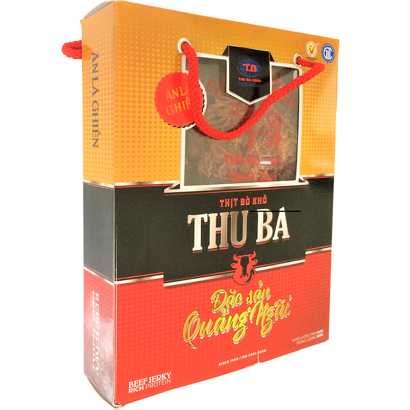 BÒ KHÔ THU BA là món đặc sản Quảng Ngãi, đạt tiêu chuẩn ISO 22000:2018 và là Hàng Việt Nam Chất Lượng Cao do Người tiêu dùng bình chọn Sản phẩm được sản xuất theo công thức