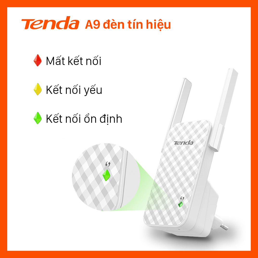 Repeater-Bộ mở rộng-Khuếch đại sóng Wifi TENDA A9 chuẩn N tốc độ 300Mbps - Hoàng Thịnh Television
