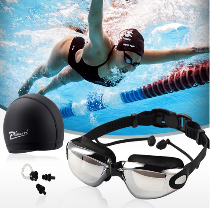 ✨Bộ kính bơi tráng gương cao cấp chống dính nước mũ bịt tai 206452