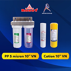 - Trọn bộ gồm: 2 cốc lọc và 2 lõi lọc PP 5 Micron + lõi Cation