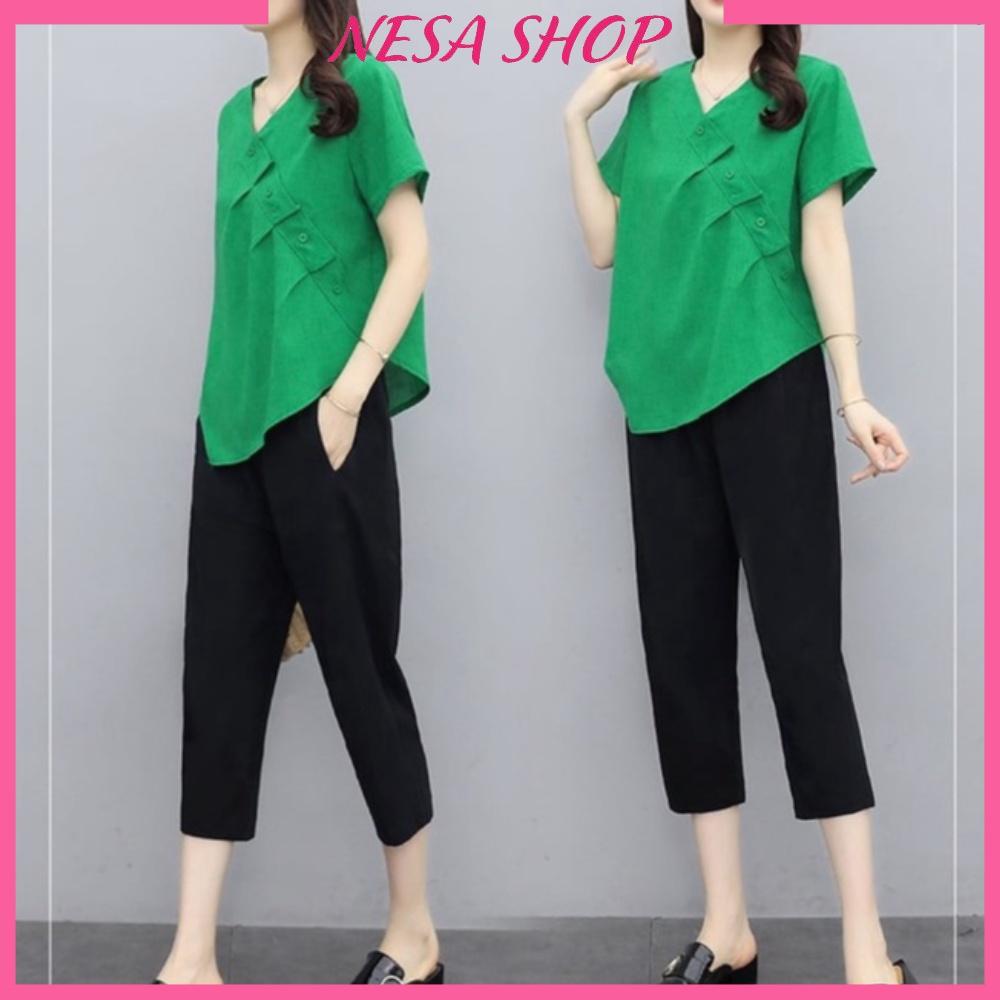 Bộ mặc nhà nữ, chất liệu Đũi mát mẻ, thấm hút mồ hôi, đồ bộ mặc nhà, đồ bộ trung niên nữ.