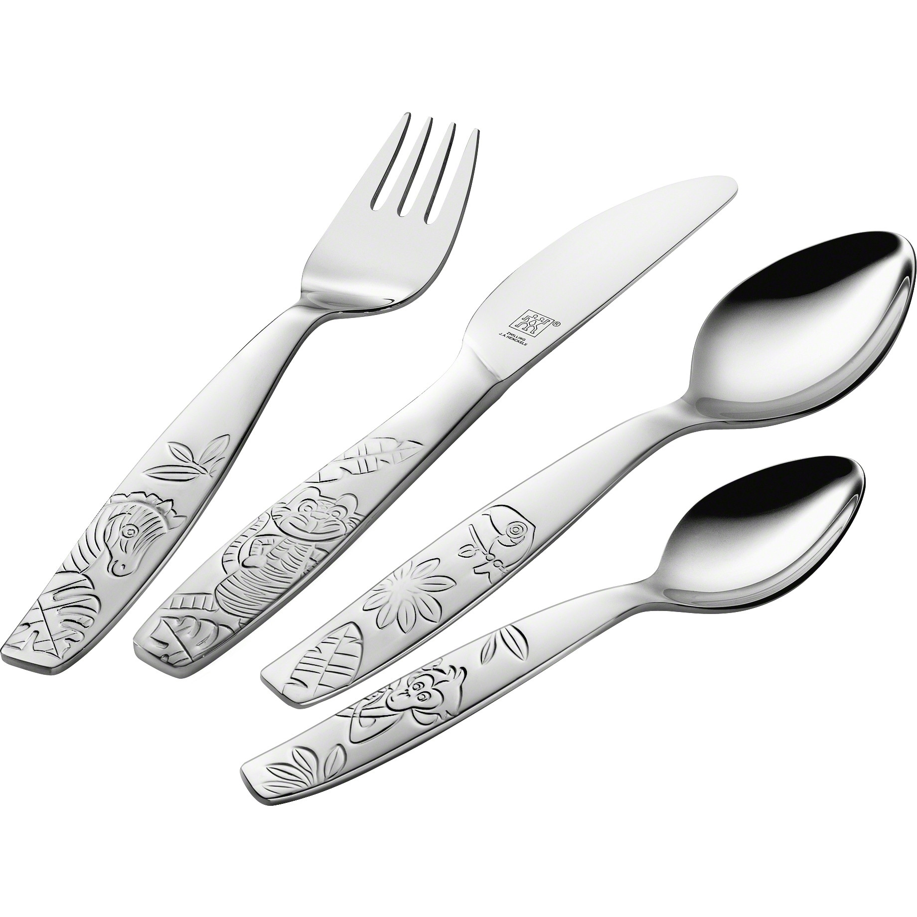 Bộ đồ ăn 4 món dành cho trẻ em thuộc dòng Jungle là sản phẩm hoàn hảo cho những bàn tay nhỏ bé đang trải nghiệm dao, nĩa và thìa đầu tiên. Để làm cho trải