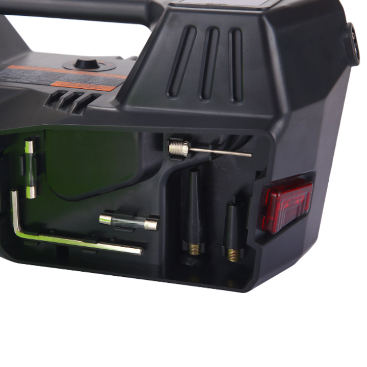 - Bơm hơi : Sức nén tối đa 150PSI, công suất 35L/phút Sản phẩm kèm theo : Găng tay bảo hộ, 2 cầu chì sơ cua, dây cáp kẹp lấy điện từ ắc quy, búa thoát hiểm chỉ cần đưa dây an toàn vào khe có gắn lưỡi dao là có thể dễ dàng cắt đứt dây và thoát hiểm. Phần búa đục với đầu nhọn, tập trung lực lớn, giúp làm vỡ kính xe (Lưu ý khi đập kính xe, nên đập ở góc, vì kính xe là kính cường lực, do đó, đập ở góc sẽ dễ dàng vỡ kính ở giữa tấm kính), 2 đầu khẩu 2 chiều 17mm-19mm-21mm-23mm phù hợp với hầu hết ốc bánh xe của các dòng ô tô cỡ vừa và nhỏ Thông số kỹ thuật Bộ nâng kích gầm kiêm bơm