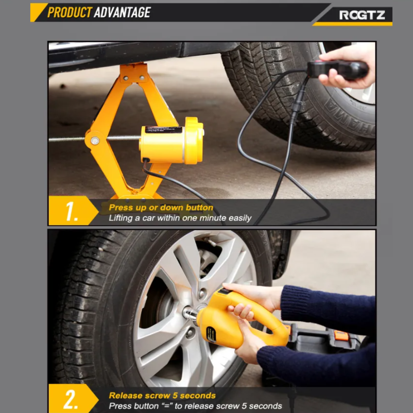 Bộ nâng kích gầm điện, kiêm máy bơm lốp và máy siết ốc ô tô đa năng 3 trong 1 ROGTZ, TY 004
