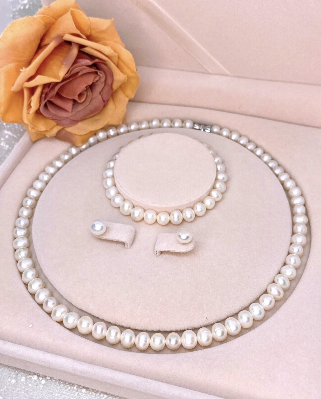 ✨Bộ Ngọc Trai Nuôi Thiên Nhiên Vòng Cổ Vòng Tay Khuyên Tai Cao Cấp Kèm Giấy Kiểm Định BCB001 Bạc Hiểu Minh